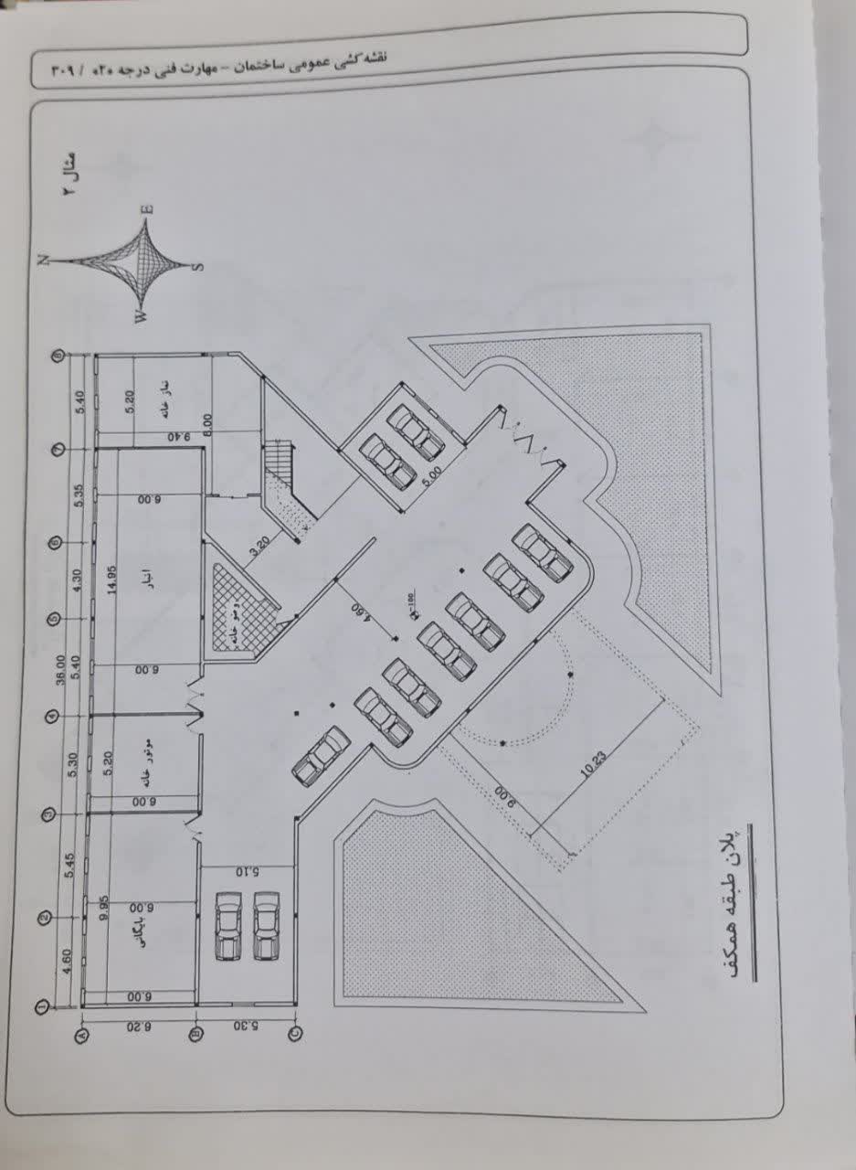 توجه4:مطابق ضوابط شهرداری ها،فضای لازم برای هر واحد پارکینگ 5*3 متر می باشد وچناچه پارک دو ماشین در کنار یکدیگر پیش بینی شود،فضایی معادل 5*5 متر مورد نیاز است.ضمنا عرض مانور اتومبیل بایستی 5 متر پیش بینی شود.